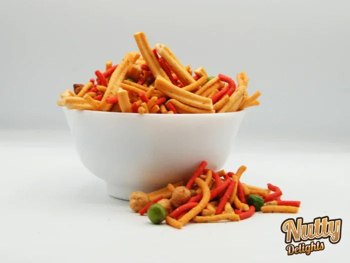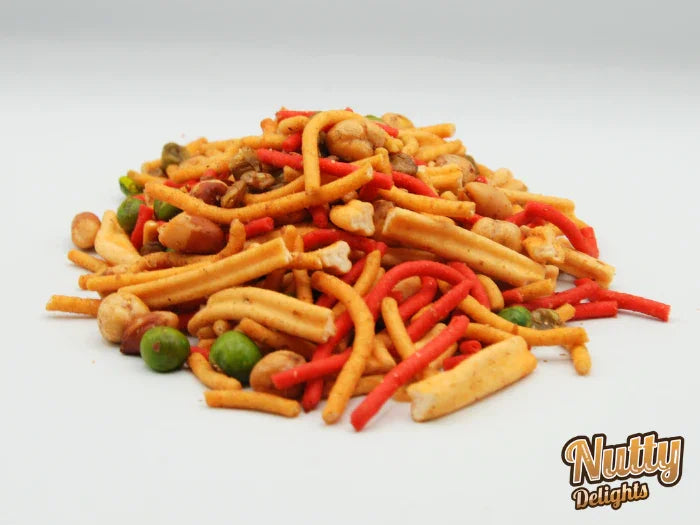 A delightful fusion of flavors, Mango Bombay Mix takes the classic crunchy snack to the next level with a hint of natural sweetness. This unique blend combines crispy gram flour noodles, crunchy lentils, and peanuts, all infused with aromatic spices and a subtle mango twist. The result is a perfectly balanced snack with a satisfying crunch and a touch of sweetness. Ideal for enjoying with tea, sharing at gatherings, or simply indulging in a flavorful treat, Mango Bombay Mix offers a delicious contrast of spicy and sweet. Packed with protein and fiber from lentils and nuts, it’s a snack that’s as satisfying as it is tasty.